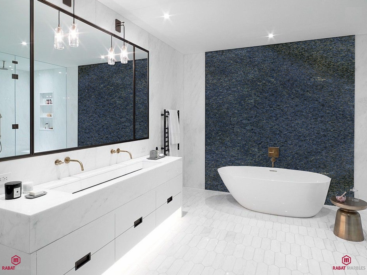 Azul Bahia Granite, quarried in Bahia, Brazil, is a luxurious stone known for its deep blue hues and subtle white or gray veining, adding depth and elegance. Each slab is unique, featuring intricate patterns that make it a dynamic choice for countertops, vanities, flooring, and wall cladding. Its durability and resistance to scratches, heat, and stains, with proper sealing, make it ideal for residential and commercial spaces. Azul Bahia’s captivating beauty and resilience make it a premier option for creating sophisticated interiors.