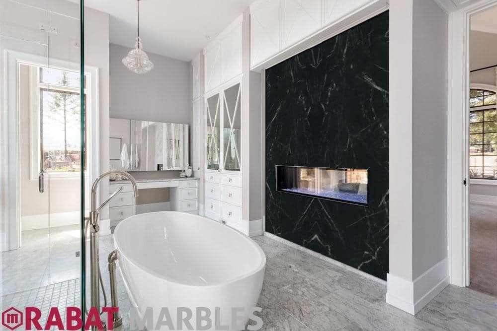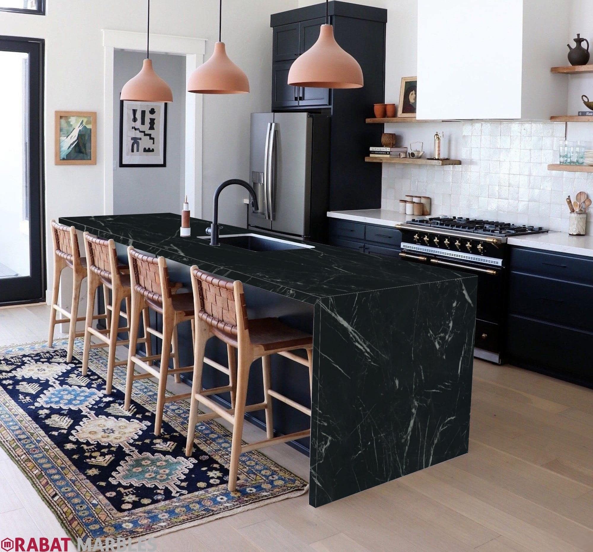 Classic Marquina by ABK Materia beautifully emulates the esteemed Black Marquina marble from northern Spain, renowned for its enduring elegance. This ceramic slab captures the essence of the iconic black marble, with its striking dark backdrop interwoven with delicate white veining that adds a touch of sophistication. Ideal for countertops, flooring, and wall cladding, Classic Marquina seamlessly merges the timeless allure of natural stone with the exceptional durability and low maintenance of ceramic. Whether for residential or commercial spaces, it offers a perfect blend of beauty and practicality, elevating any environment with its refined and dramatic presence.