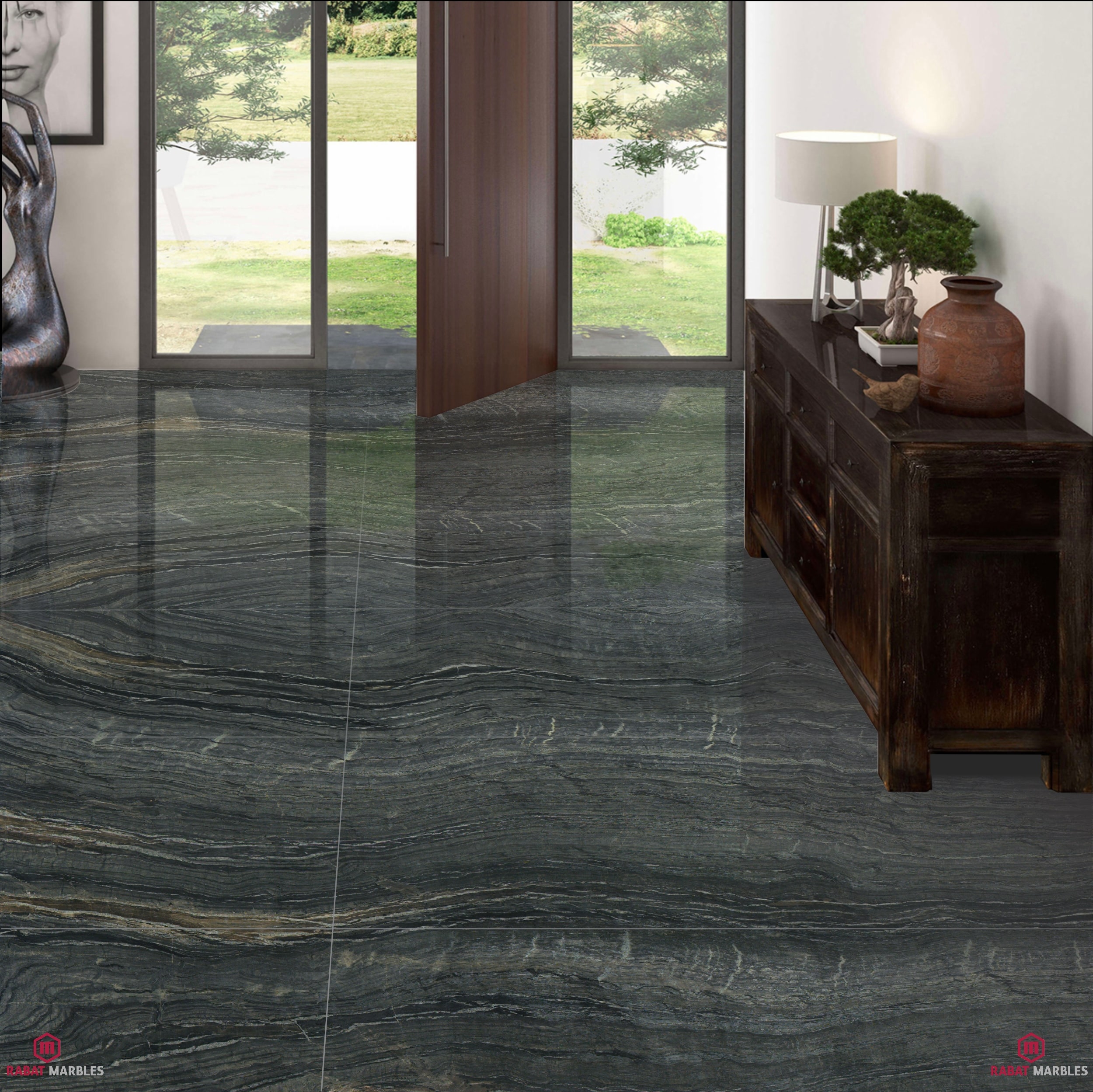 Silver Waves Granite, a material quarried in Italy, is known for its striking contrast of white with dark grey to black wavy patterns. This metamorphic stone features a banded texture formed through significant geological transformations. Its elegant appearance makes it ideal for countertops, flooring, wall cladding, and decorative elements, adding sophistication and natural beauty to any space.