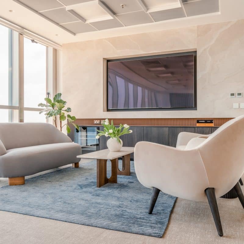 Office Interiors – Black & Gold Marble Reception & Travertine Boardroom Office Interiors – Black & Gold Marble Reception & Travertine Boardroom